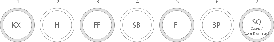 | 1) Type | 2) Segmentation | 3) Material of Insulation and Sheath | 4) Shield Type | 5) Shape | 6) Cores Coposition | 7) Conductor size and Composition |